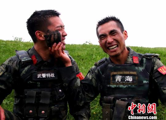 图为武警青海总队机动第一支队的特战队员们突破极限后的喜悦。 李旭东 摄