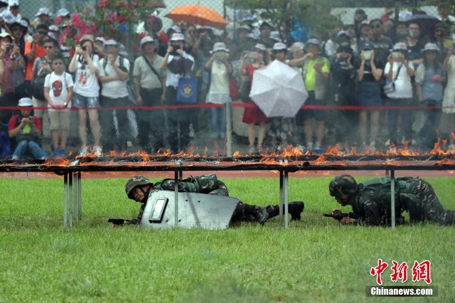 7月1日上午,猎人战斗表演吸引参观的香港市民和青年学生。驻香港部队6月30日至7月1日连续两天开放昂船洲军营,其中7月1日为香港青年学生专场,两天活动共吸引约3万名市民和青年学生入营参观,近距离感受军队和军人独有的文化和魅力。中新社记者 洪少葵 摄