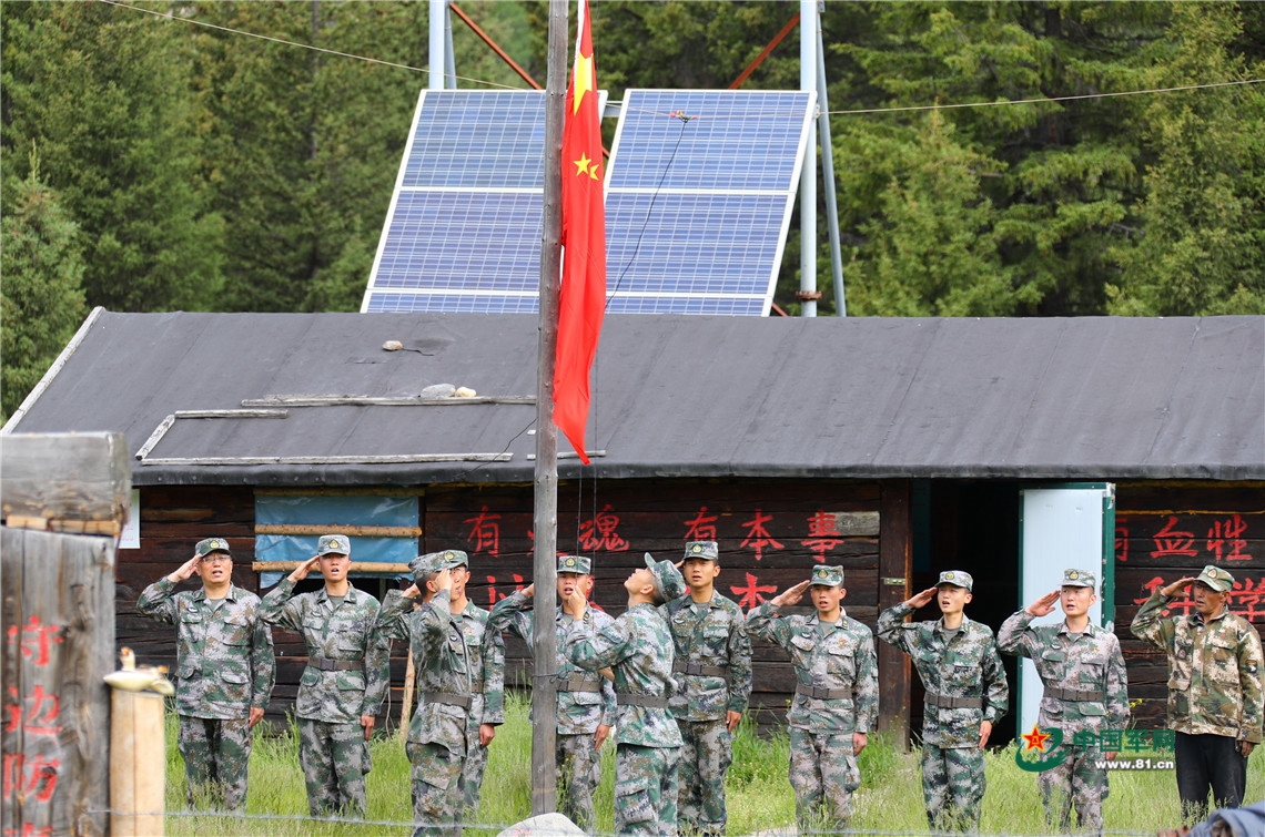 进驻哨所官兵唱响国歌升起国旗。吴世科 摄