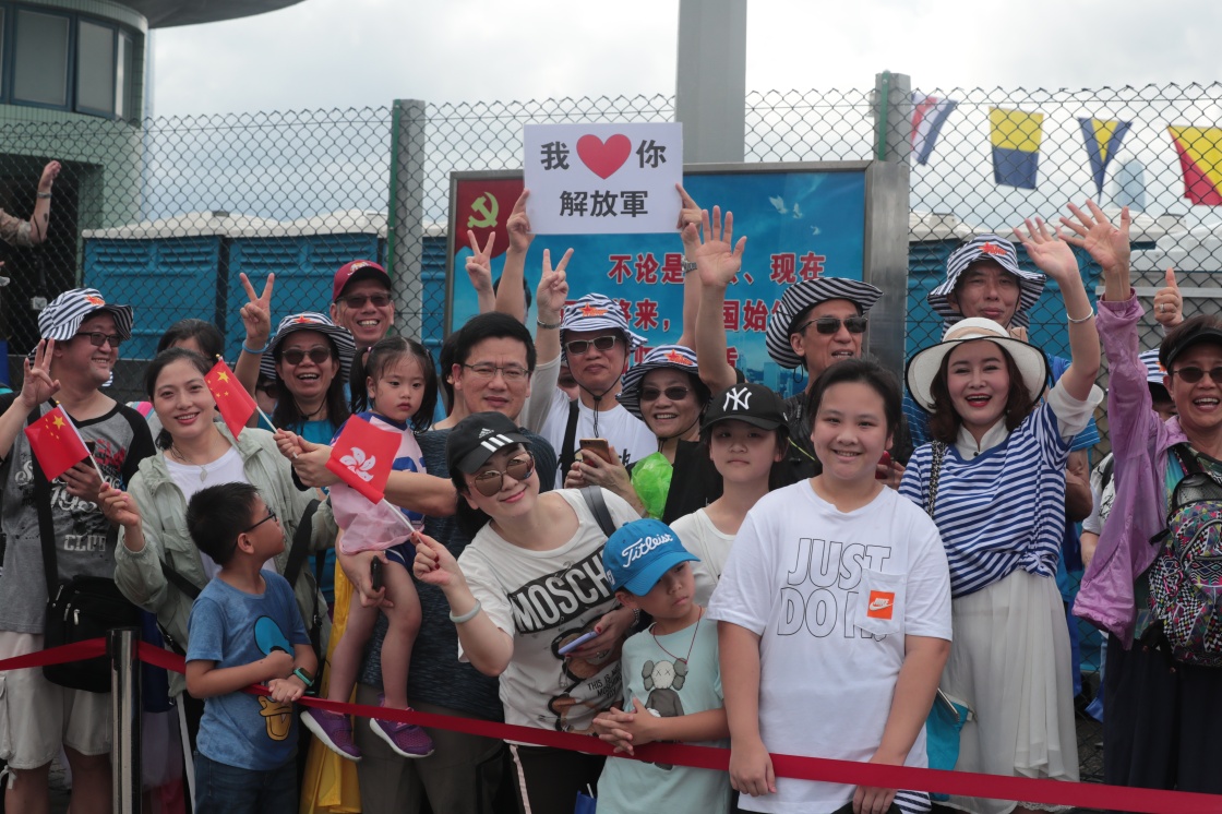 7月1日,参观军营的香港市民为驻港部队官兵点赞加油。新华社发(原俊敏 摄)