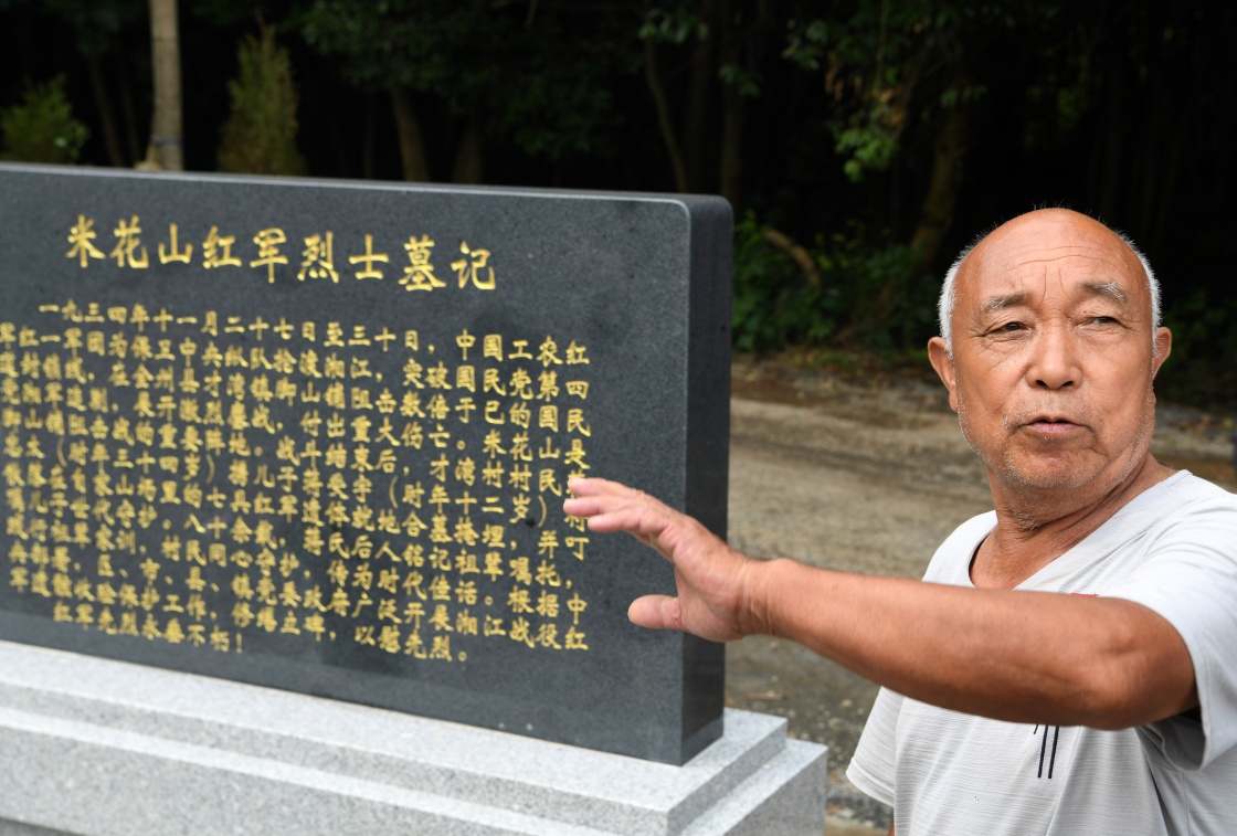 75岁的蒋石林头发花白,皮肤黝黑,个子不高但神采奕奕。在青山环抱的米花山红军烈士墓,这位广西桂林市全州县才湾镇才湾村的村民,向寻访至此的新华社记者讲述了一段祖孙五代守墓的故事。
