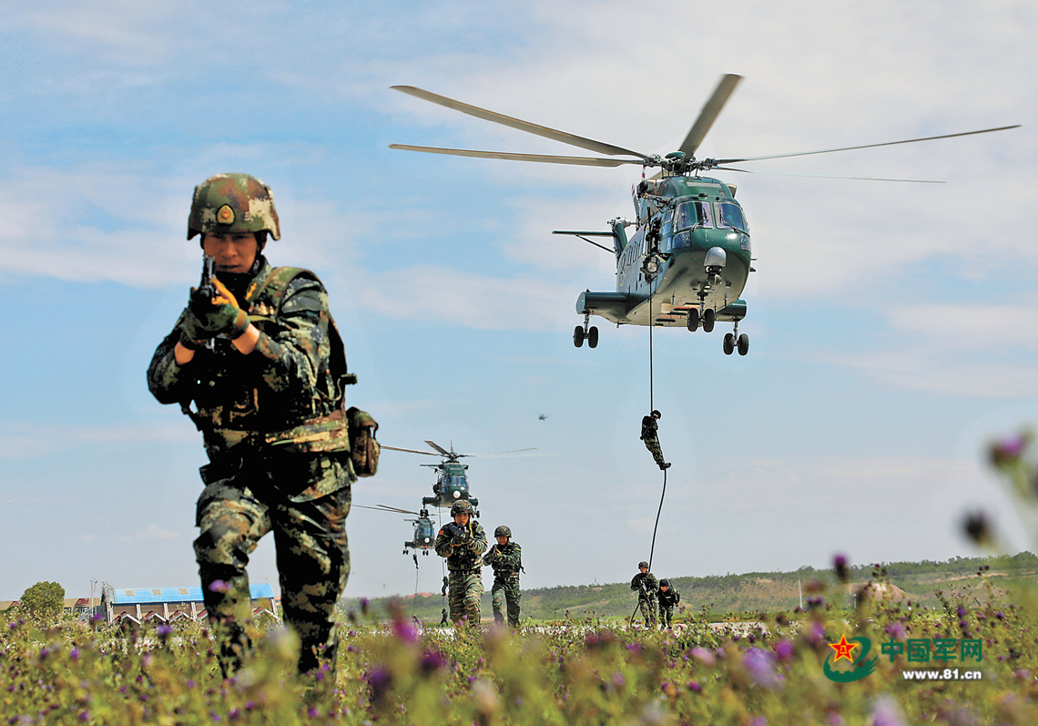 快速索降,搜索捕歼……看蓝天白云下武警官兵的矫健身影