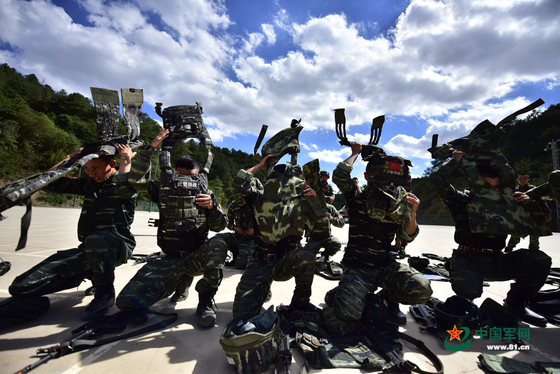 特战队员每日训练都是全副武装,光防弹衣、个人武器等就达30公斤。任贵摄