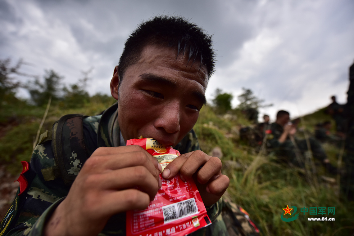 野外训练极度缺少热食,特战队员们需自行利用随身携带的干粮进行充饥。任贵摄