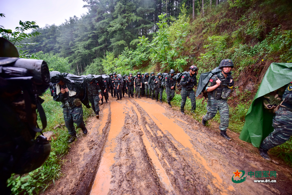 “魔鬼周”训练中,特战队员每天都要负重徒步行军30余公里的路程,一路上他们爬坡涉险、翻山越岭、长途奔袭,没有一个人叫苦,没有一个人掉队。虽然疲惫写在每个人的脸上,但在这场意志的考验下,特战队员们用实际行动一次次地挑战极限。