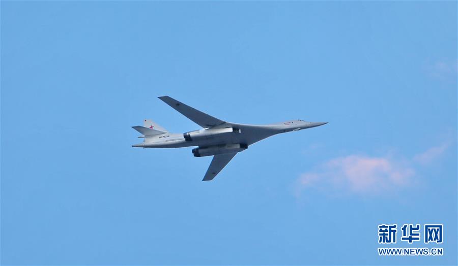 7月3日,在白俄罗斯首都明斯克,俄罗斯一架图-160战略轰炸机参加独立日阅兵式。 白俄罗斯3日晚在首都明斯克举行盛大阅兵式,庆祝白俄罗斯独立日暨二战中从德国法西斯占领下解放75周年。 新华社记者魏忠杰摄