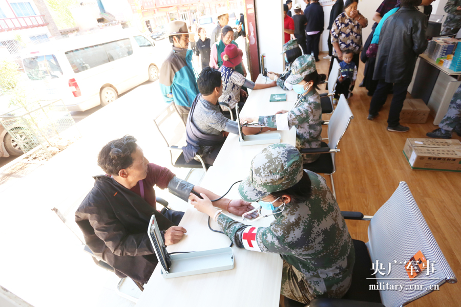 医疗小队认真细致地为藏族群众检查身体 张源 摄
