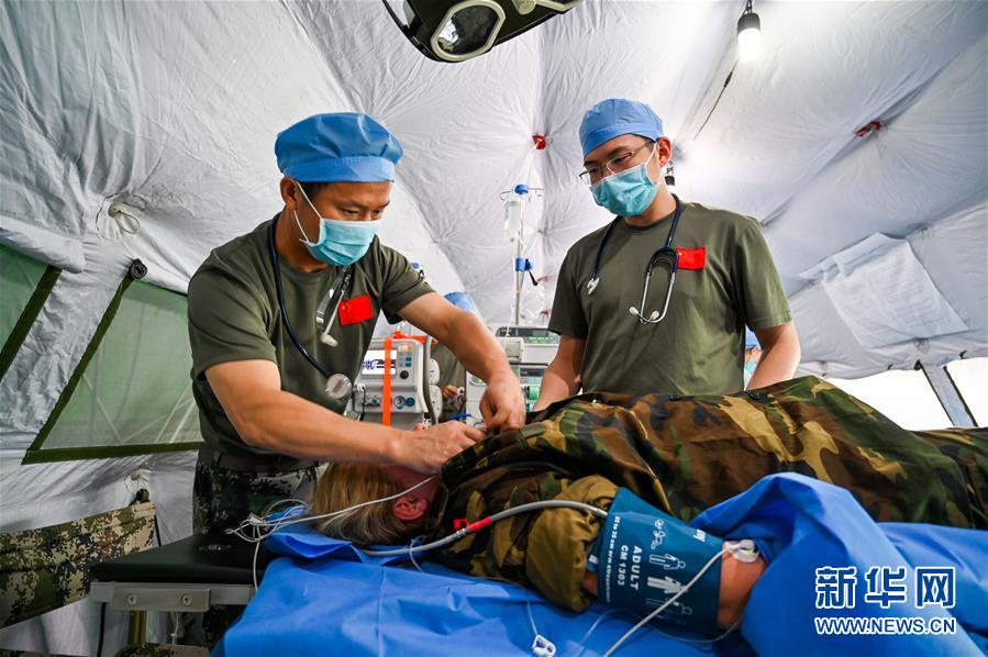 7月9日,在德国费尔德基兴卫勤训练基地,中方卫勤分队队员在演习中为“伤员”进行手术治疗。 当日,中德“联合救援—2019”卫勤实兵联演举行开幕式,开启为期两天的全要素全流程连贯演习。这是我军卫勤力量第一次实兵实装成建制赴欧洲开展联合演练。 新华社记者 连振 摄