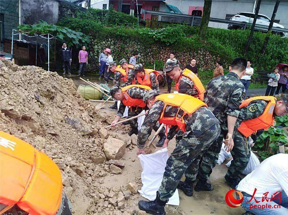 浙江衢州:强降雨致河堤受损 武警紧急投入抢险