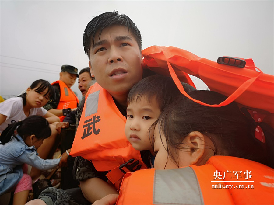 “武警叔叔来了,我们有救了!”小朋友看到前来救援的武警官兵,高兴地向官兵挥手。