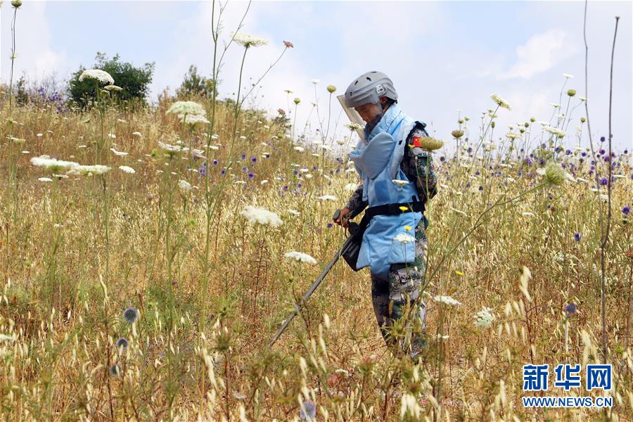 6月18日,在位于黎巴嫩与以色列边境的一处雷场,扫雷作业手正在探测地雷。新华社发(孙帅摄)