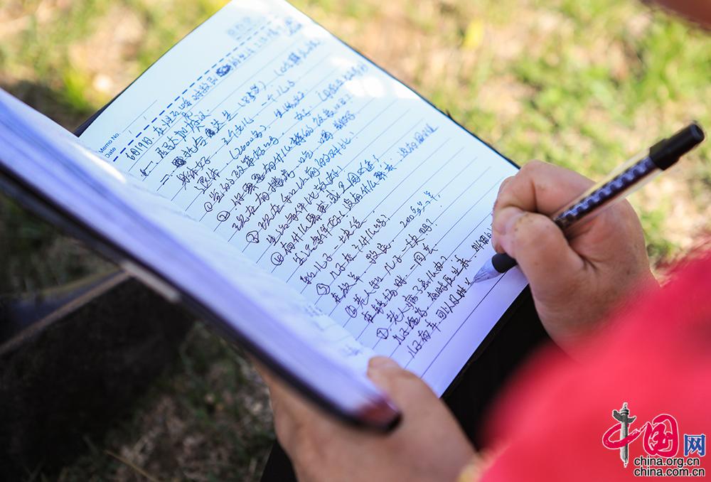 王平随身携带的本子上,写满了她每天工作内容的记录。“老人病了怎么办”、“有什么需求和困难”……跟牧民交流得到的每一条信息,王平都仔细地记录下来。从去年到现在,王平已经用完了四个这样的笔记本。中国网记者 伦晓璇 摄