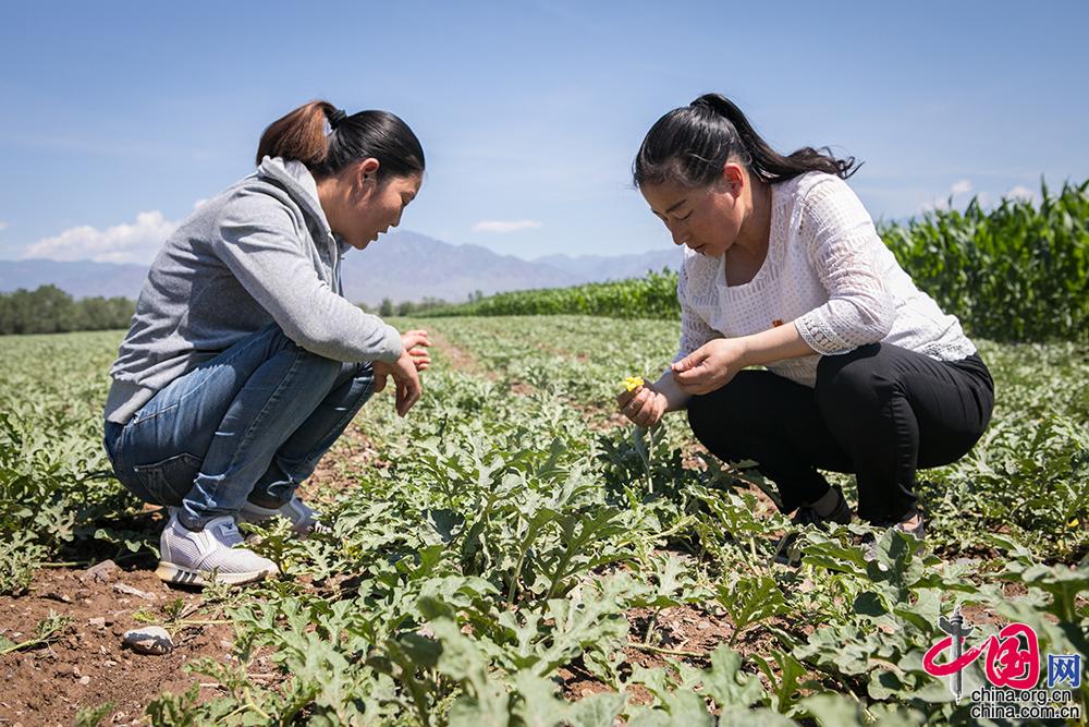 2012年4月,王平向连队党支部建议设立“王平帮扶基金”,由王平拿出5万元作为启动资金,用于职工工作生活应急之用。连队党员干部、种植养殖户被王平的做法打动,拿出资金共同建立帮扶基金。王平不仅给职工提供资金,还经常提供技术方面的指导。在一片种满打瓜的田地里,王平与连队职工王雪花查看打瓜长势,分析施肥的时机。多年来,王平不放弃任何学习的机会,还订了很多书刊和杂志,报学习班,学习各种养殖业、农牧业知识。中国网记者 伦晓璇 摄