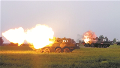 地面突击分队在陆地和空中多种力量协同配合下实施突入行动,反坦克导弹、突击炮、机关炮等武器交替开火,形成强大火力网,对“敌”阵地发起猛烈攻击。与此同时,特战分队搭乘直升机破袭“敌”指挥所,心战分队对“敌”展开“慑心”行动……在多种作战力量协同打击下,“敌”防御阵地被摧毁。