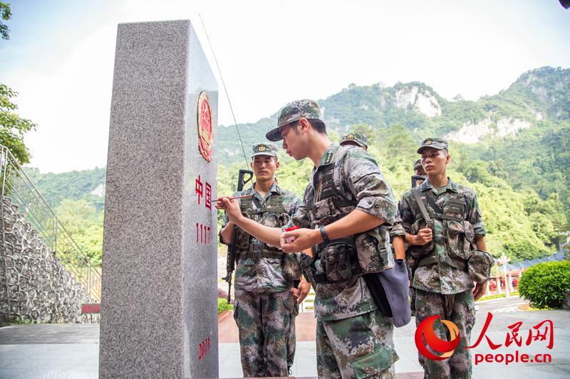 人民网北京7月20日电 (马昌 赵光霞 严立政)近日,人民网“祖国在我心中”界碑描红主题活动第五采访分队来到广西壮族自治区南部的崇左市,跟随南部战区陆军边防部队一起,对中越边境线的界碑进行描红。