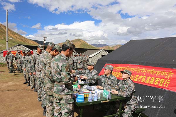 专家医疗队为官兵发放常用药品