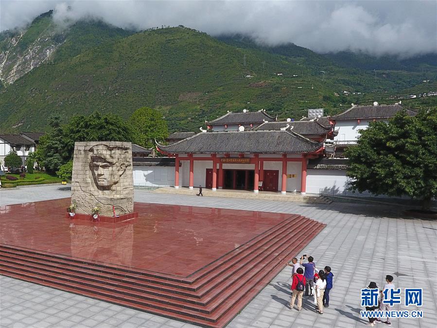 人们来到位于四川石棉安顺场的中国工农红军强渡大渡河纪念馆参观(7月26日无人机拍摄)。 新华社发(王曦 摄)