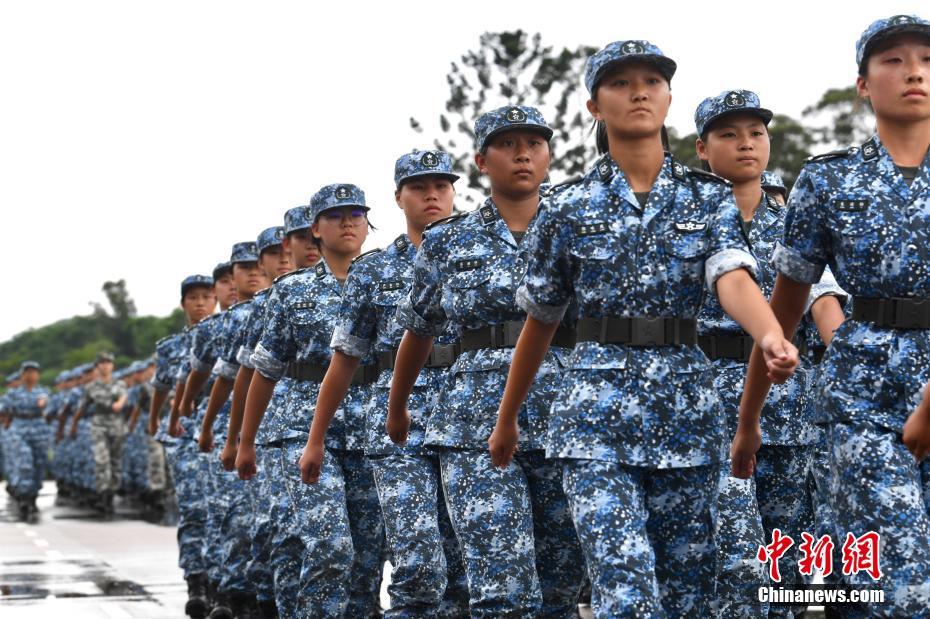 7月28日,女学员进场,精神奕奕。当天,300名青少年穿着齐整的迷彩服集合在香港新围军营的操场上。学员们昂首挺胸列队进场,在庄严的升国旗仪式之后他们进行了岳家拳表演,用整齐的队形、熟练的动作、高昂的气势,向在场嘉宾和家长们展示过去半个月的训练成果。此届军事夏令营中,青少年营员们接受了体能训练、单个军人队列动作、战备基础、激光模拟对抗和地图使用等多项军事课目训练,参加了徒步行军、专题讲座、学唱歌曲、观看《致敬祖国》综艺演出等活动,分别赴昂船洲军营和石岗军营参观见学,度过了短暂而又充实的军营时光。中新社记者 李志华 摄