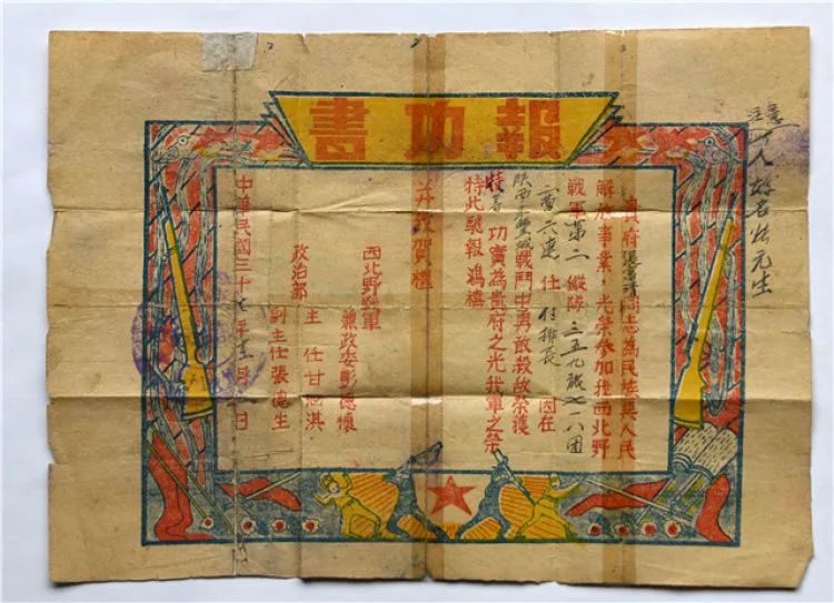 张富清当年的报功书(3月30日翻拍)。新华社记者 程敏 摄