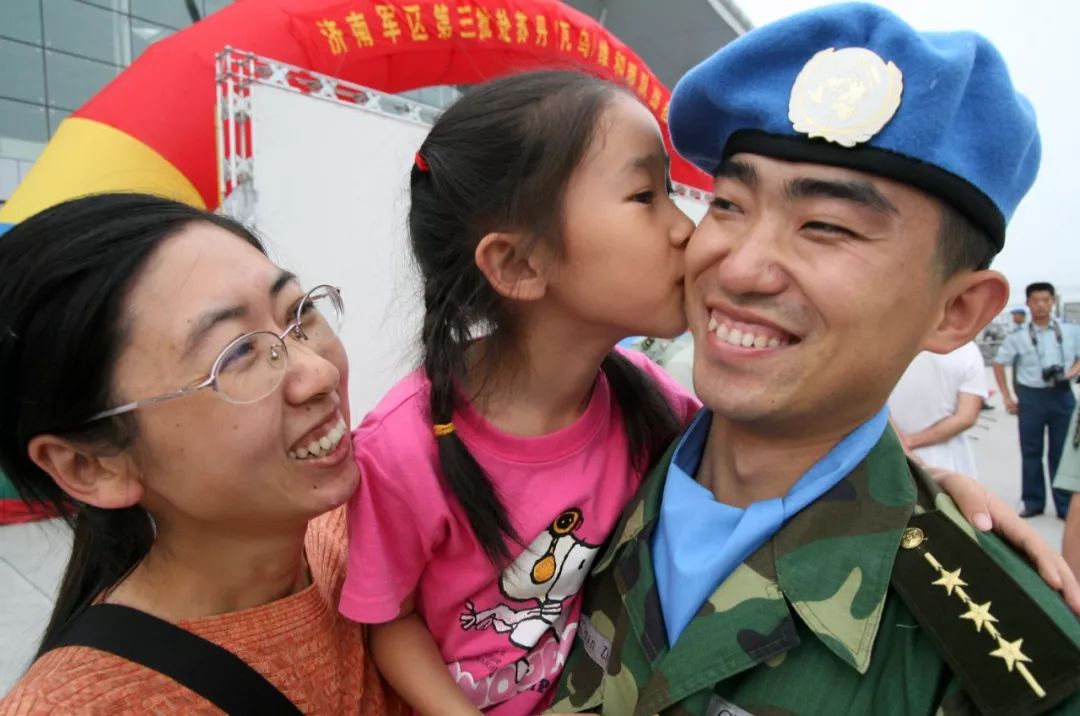 2007年9月17日,一名即将出征的维和人员与家人依依惜别。吕传泉摄