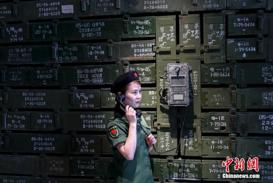 8月1日,河南济源,老兵工酒店用弹药箱堆砌的隔断墙。据介绍,老兵工酒店是由一处废弃的兵工厂改造而成,这所三线建设时期的兵工厂藏身太行山腹地,代号531,是生产火炮的军工厂。酒店的“库吧”则是由藏于山洞之中的弹药库改造而来,库吧保留了弹药库岩洞的原有模样,并且放置了手榴弹、榴弹炮、步枪等仿制品,由众多的弹药箱支撑桌面,整个屋子火药味十足。屋子里播放着那些难忘的军旅歌曲,透着一代人满满的情怀。在老兵工酒店,每天嘹亮的军号依然按时响起,就连酒店员工的着装都尽量体现着军旅色彩。这个“库吧”更是已成为让人回忆那些年军旅生涯的理想去处。中新社记者 王中举 摄