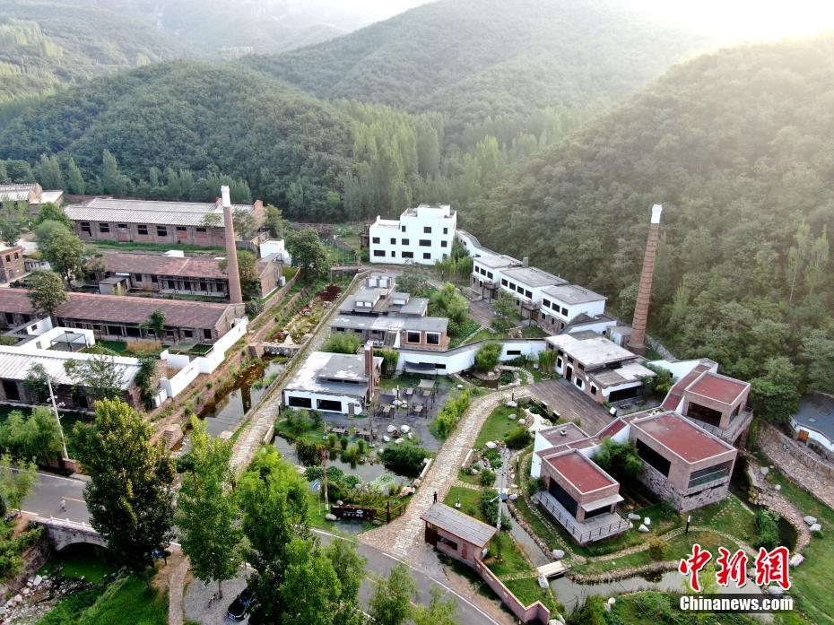 8月1日,河南济源,老兵工酒店所在地是废弃兵工厂,被群山环抱。据介绍,老兵工酒店是由一处废弃的兵工厂改造而成,这所三线建设时期的兵工厂藏身太行山腹地,代号531,是生产火炮的军工厂。酒店的“库吧”则是由藏于山洞之中的弹药库改造而来,库吧保留了弹药库岩洞的原有模样,并且放置了手榴弹、榴弹炮、步枪等仿制品,由众多的弹药箱支撑桌面,整个屋子火药味十足。屋子里播放着那些难忘的军旅歌曲,透着一代人满满的情怀。在老兵工酒店,每天嘹亮的军号依然按时响起,就连酒店员工的着装都尽量体现着军旅色彩。这个“库吧”更是已成为让人回忆那些年军旅生涯的理想去处。中新社记者 王中举 摄
