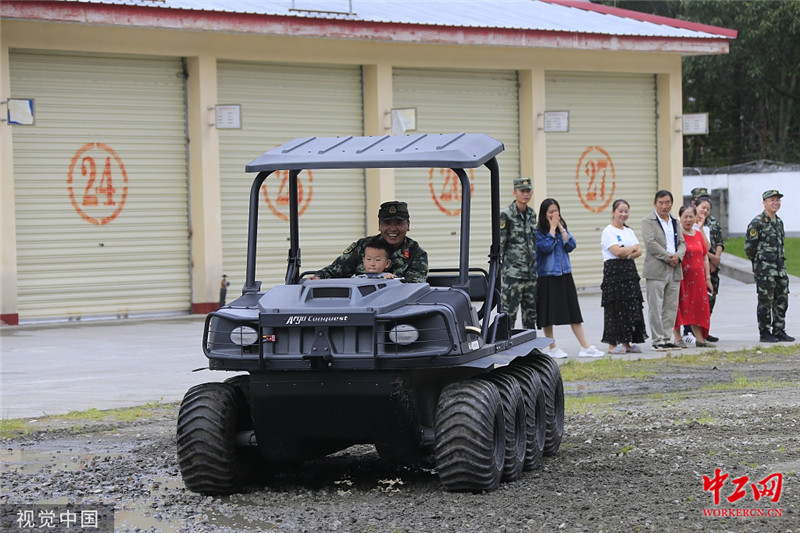 2019年8月1日,驻藏武警某部交通第三支队邀请来队探亲军属游军营共庆建军节活动,体验水陆两栖车辆。