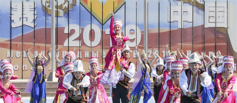 当日,“国际军事比赛-2019”中国陆军承办赛事开幕式在新疆库尔勒举行。 新华社发(刘晓东 摄)