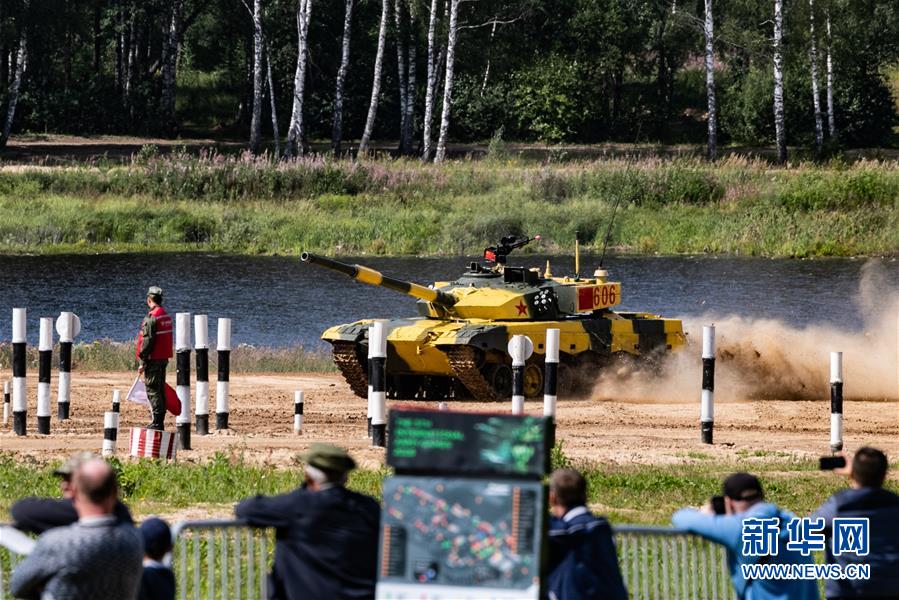 8月3日,在俄罗斯首都莫斯科远郊的“阿拉比诺”靶场,中国队96B型坦克在比赛中。 “国际军事比赛-2019”的揭幕赛——一场“坦克两项”小组赛3日在俄罗斯首都莫斯科远郊的“阿拉比诺”靶场举行。项目裁判委员会在赛后宣布,中国“坦克两项”参赛队在小组赛中夺得第一名,白俄罗斯队获得第二名。 新华社记者 白雪骐 摄