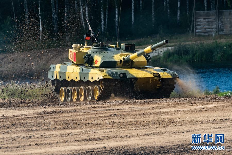 8月3日,在俄罗斯首都莫斯科远郊的“阿拉比诺”靶场,中国队96B型坦克在比赛中。 “国际军事比赛-2019”的揭幕赛——一场“坦克两项”小组赛3日在俄罗斯首都莫斯科远郊的“阿拉比诺”靶场举行。项目裁判委员会在赛后宣布,中国“坦克两项”参赛队在小组赛中夺得第一名,白俄罗斯队获得第二名。 新华社记者 白雪骐 摄