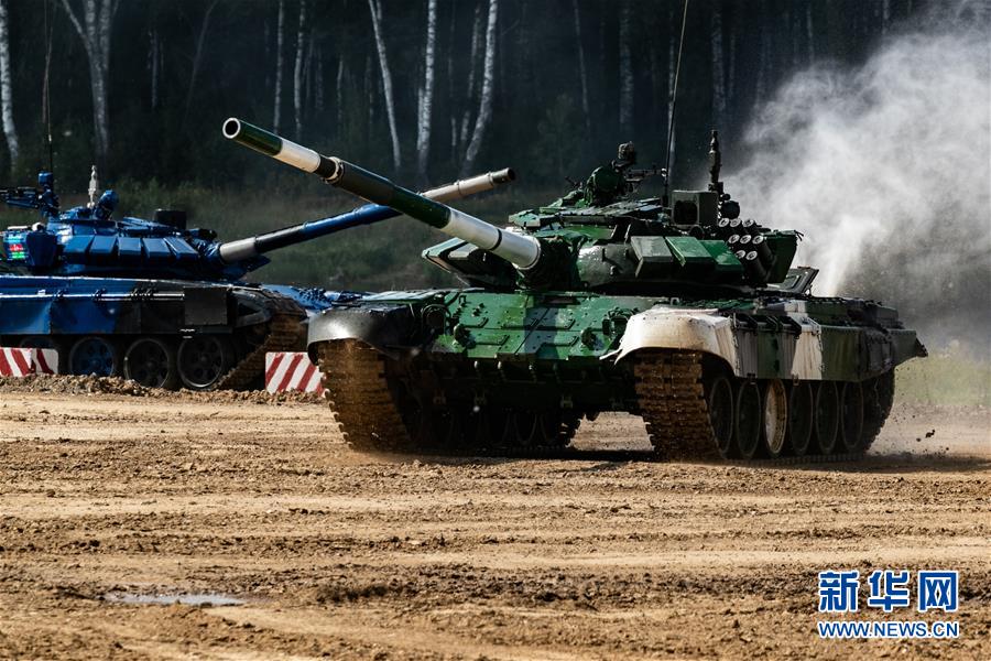 8月3日,在俄罗斯首都莫斯科远郊的“阿拉比诺”靶场,塞尔维亚队(前)和阿塞拜疆队驾驶俄方提供的T72B3坦克在比赛中角逐。 “国际军事比赛-2019”的揭幕赛——一场“坦克两项”小组赛3日在俄罗斯首都莫斯科远郊的“阿拉比诺”靶场举行。项目裁判委员会在赛后宣布,中国“坦克两项”参赛队在小组赛中夺得第一名,白俄罗斯队获得第二名。 新华社记者 白雪骐 摄