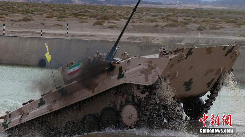 图为伊朗队步战车通过涉水场。中新社记者 王小军 摄