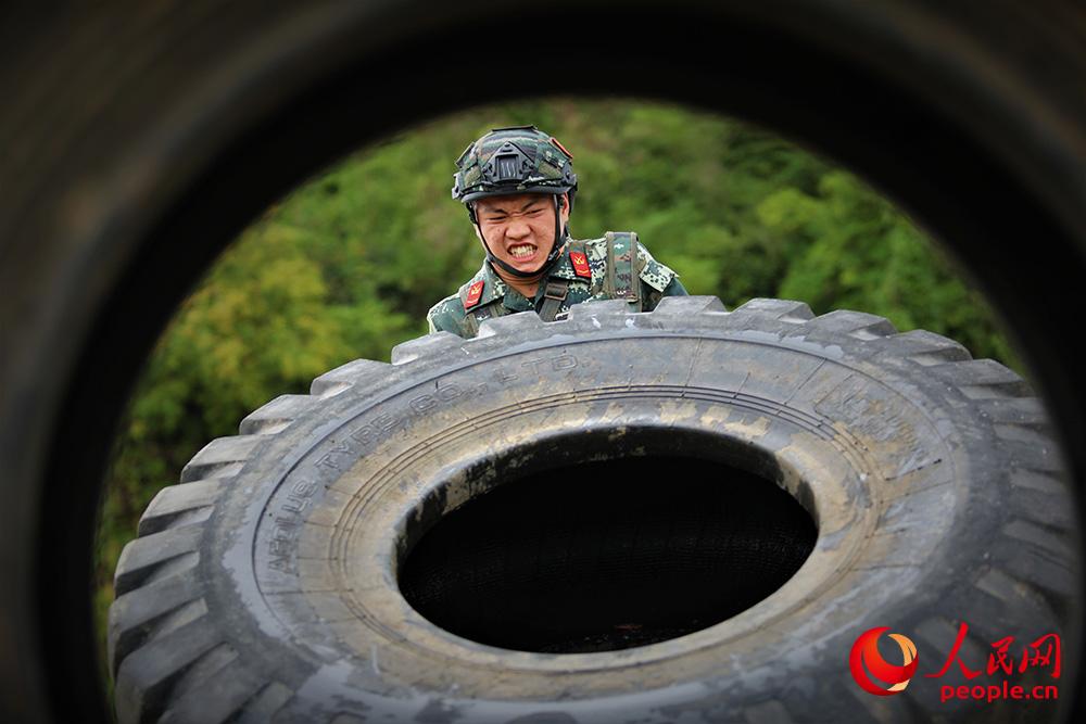 翻轮胎训练。(果志远 摄)