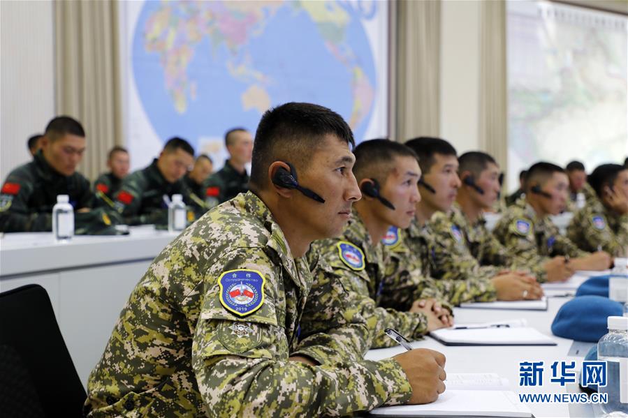 8月6日,吉方参演官兵进行研讨交流。 新华社记者 刘芳 摄