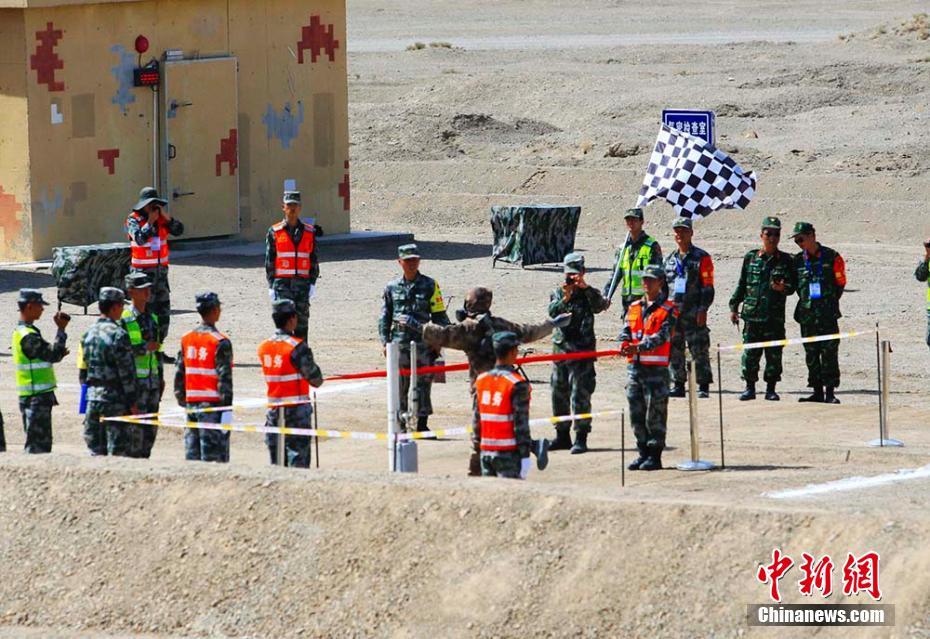8月8日,中国陆军承办“国际军事比赛-2019”“安全环境”单组赛吸引五国30名防化兵鏖战“安全环境”单组赛。比赛全程防化兵穿防毒服、戴防毒面具。比赛开始前,车组人员首先进行两分钟的气密性检查,而后登车,由起点出发,驾驶车辆依次通过陡坡、限宽门、雷区、洗消作业区等。洗消完毕后,车辆再次启动前进,最后车组到达人员火力突击区,人员下车逐个通过高板、索道、矮墙等12道障碍,到达终点,完成比赛。单组赛以各车组用时长短决定排名先后,比赛用时为实际完赛时间加上违规罚时。最终,中国队表现出色,赢得现场观众阵阵掌声。图为中国与越南一组比赛,中国参赛队成员冲过终点。王小军 摄