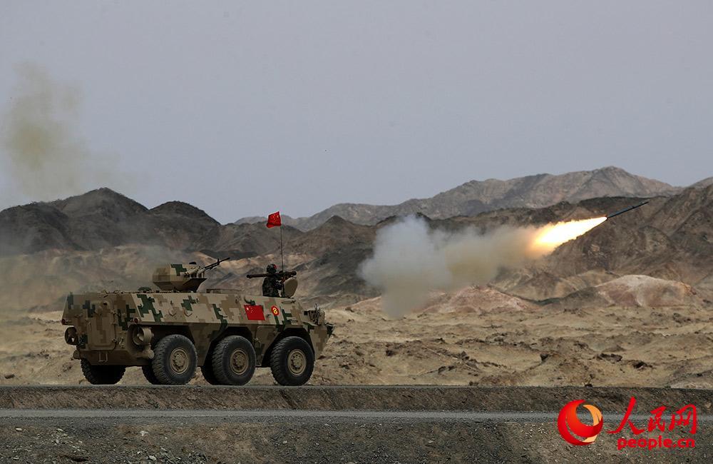 中国参赛队员使用便携式导弹对直升机靶标进行射击。