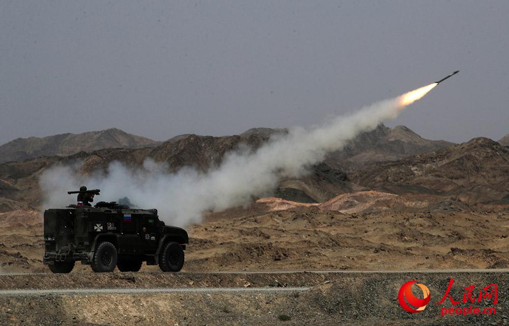 俄罗斯参赛队员使用便携式导弹进行实射。