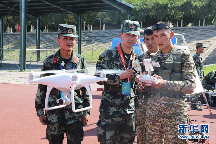 中吉参演官兵进行侦察装备操作训练(8月8日摄)。 新华社发(董虎 摄)