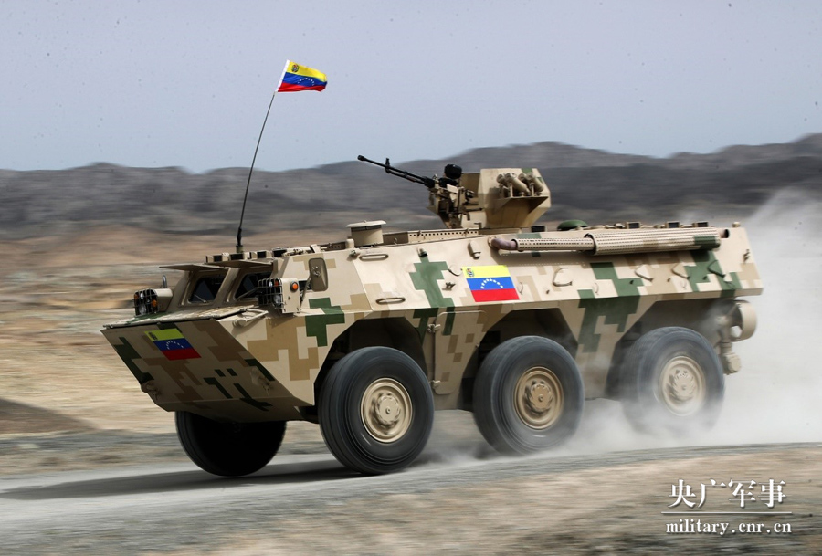 委内瑞拉参赛队员驾驶战车疾驰在赛道上。 袁凯 摄