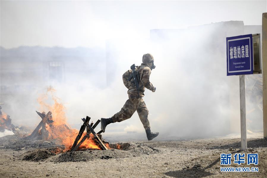 在“国际军事比赛-2019”“安全环境”项目单组赛中,中国参赛队员通过火障(8月8日摄)。“国际军事比赛-2019”“安全环境”项目接力赛12日在新疆库尔勒赛区举行,中国队以20分42秒的成绩夺冠。至此,“安全环境”项目比赛全部结束,中国队包揽“安全环境”项目全部比赛第一。 新华社发(王鹏飞 摄)