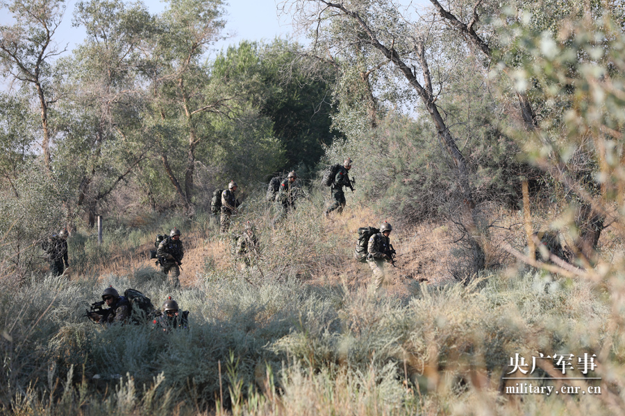 中吉“合作-2019”联合反恐演练沙漠追剿战斗现场