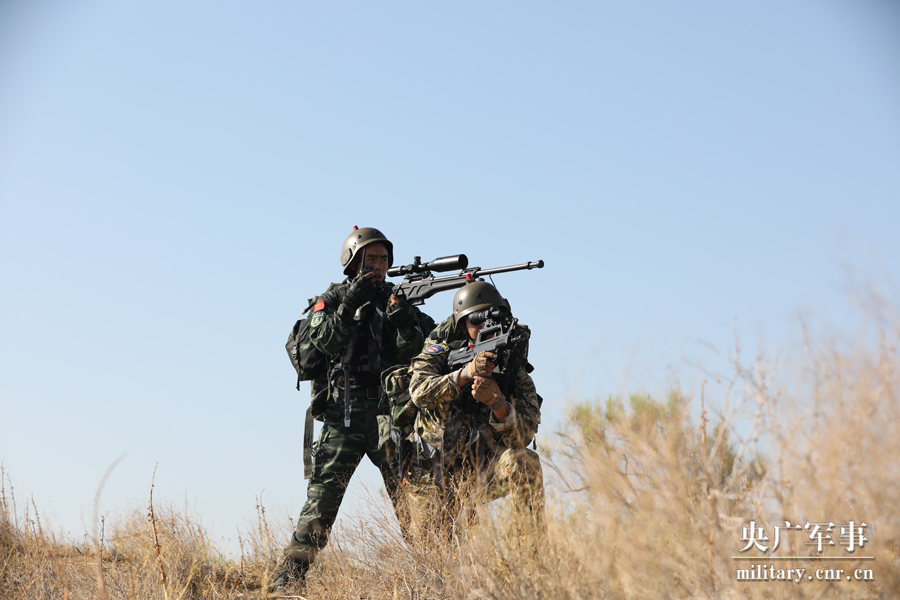 中吉“合作-2019”联合反恐演练沙漠追剿战斗现场