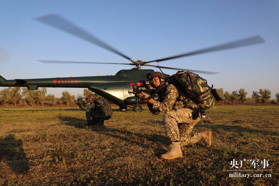 中吉“合作-2019”联合反恐演练沙漠追剿战斗现场
