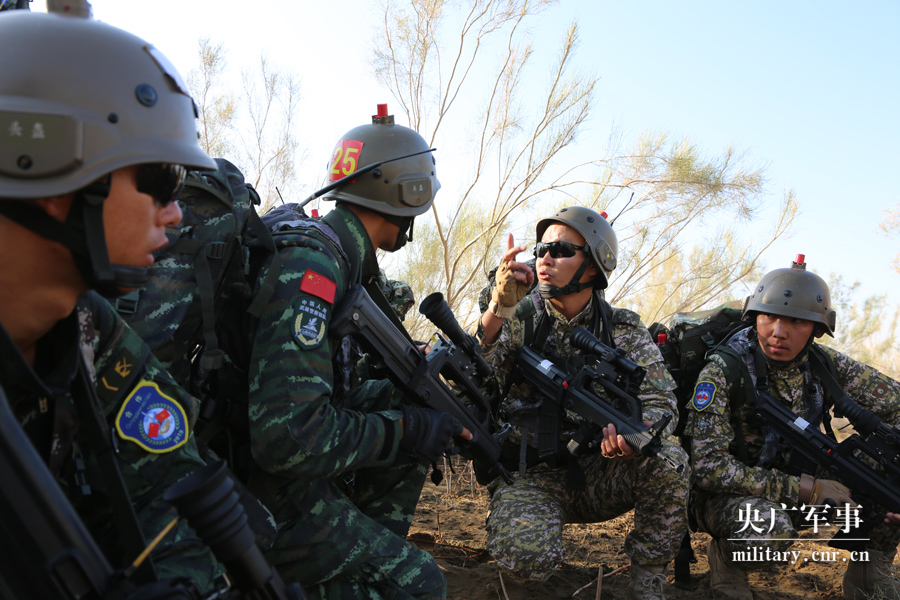 中吉“合作-2019”联合反恐演练沙漠追剿战斗现场