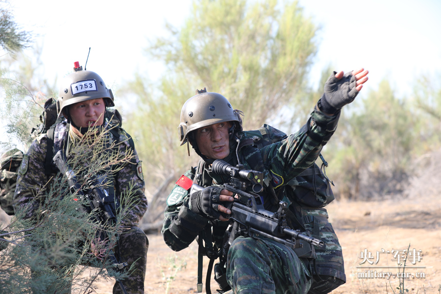 中吉“合作-2019”联合反恐演练沙漠追剿战斗现场