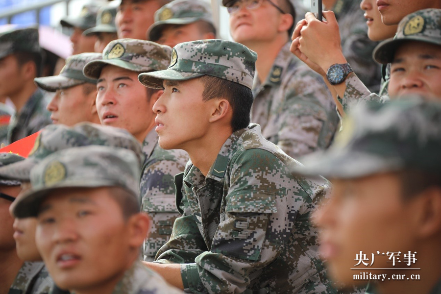 观看比赛的中国官兵。 刘梦源 摄