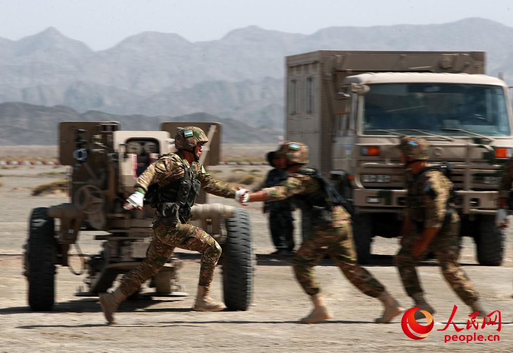 中吉“合作-2019”联合反恐演练沙漠追剿战斗现场