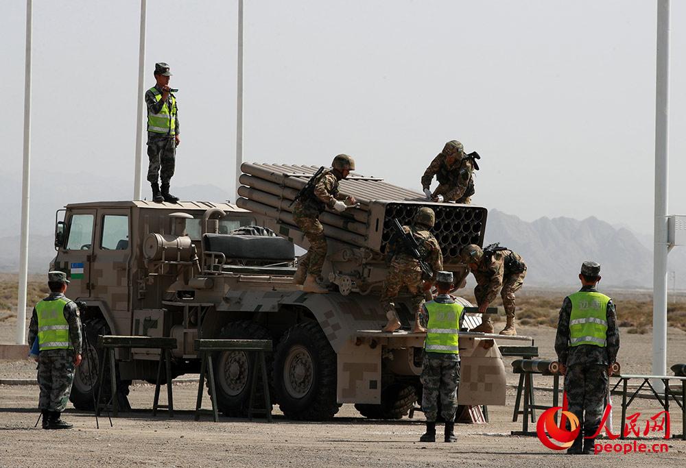 中吉“合作-2019”联合反恐演练沙漠追剿战斗现场