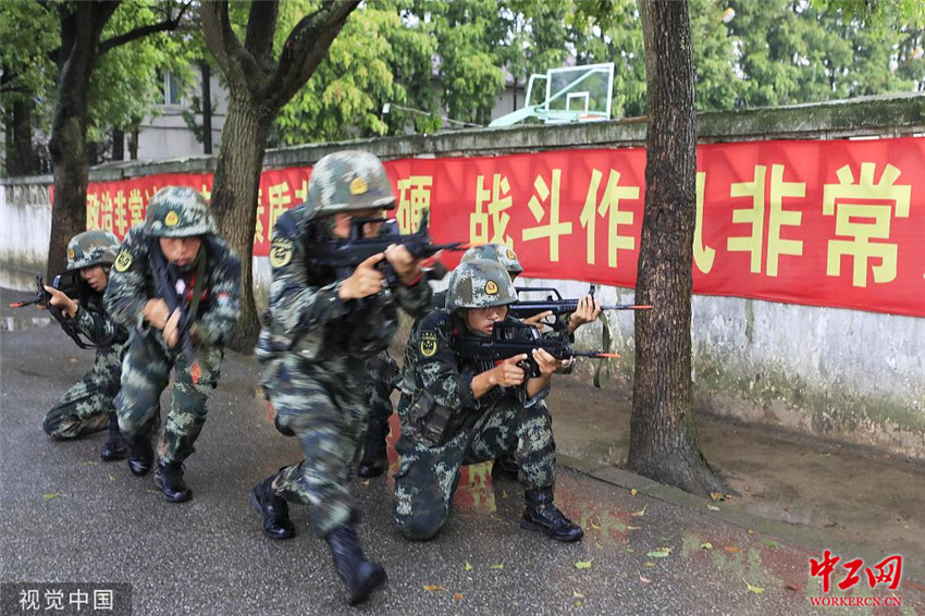 2019年8月14日,武警上海总队执勤第二支队特战队员正在进行战术训练。当日,上海武警官兵在某训练基地开展“魔鬼周”极限训练。据了解,此次“魔鬼周”按照“高难度、超极限、大强度”的原则,需要完成40多个课目的训练。  殷立勤(上海分社)/中新社/视觉中国