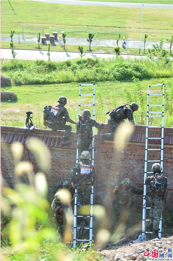 在特战小队综合战术课目中,参赛队员合理利用时机、路线及遮蔽物躲避监控,秘密接近目标区域。 王肸 摄